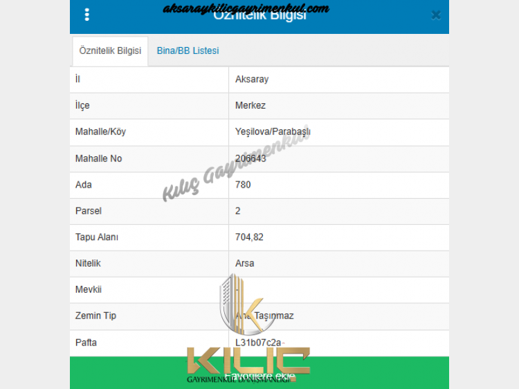 YEŞİLOVA PARABAŞLI DA SATILIK 705 M2 ARSA