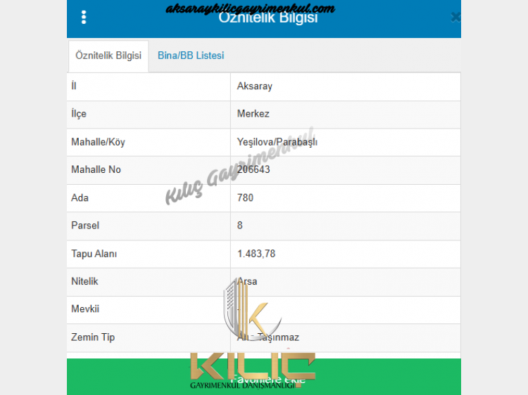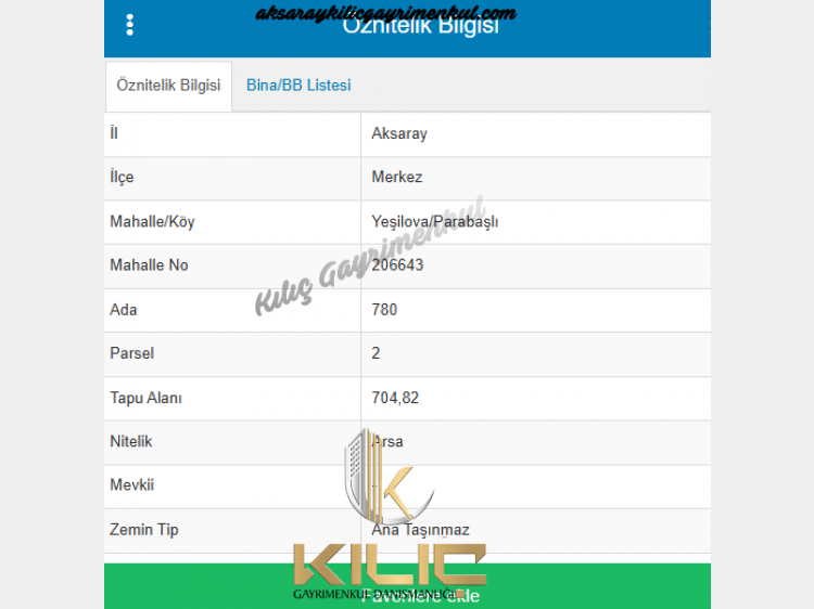 AKSARAY MERKEZ YEŞİLOVA PARABAŞLI DA SATILIK ARSALAR Ada 780 - Parsel 8 - 1484 M2 - 1.650.000 TL Ada 780 - Parsel 9 - 1458 M2 - 1.650.000 TL Ada 780 - Parsel 2 - 705 M2 - 1.250.000 TL BAĞ BAHÇE VİLLALIK YATIRIMLIK PARSELLER Kılıç Gayrimenkul Hakan ÇALIŞKAN - 0 546 798 37 98 Web Sitemizden Diğer İlanlara Da Bakabilirsiniz